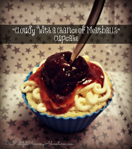 There you have it, "Cloudy With a Chance of Meatballs" cookie dough cupcakes.