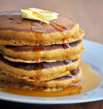 In a medium bowl, whisk together maple syrup, pumpkin, buttermilk, oil, egg and vanilla until smooth. Pour into flour mixture and whisk until well-combined.