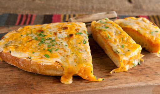Spread garlic butter on bread. Cover with the grated cheeses. Transfer to prepared baking sheet.