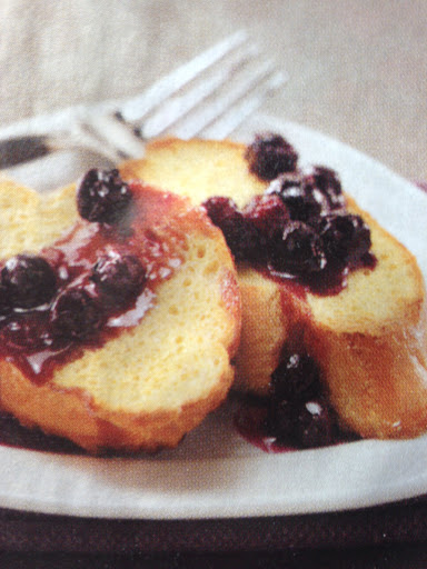 2. In a large bowl, beat the egg substitute, milk, vanilla, and salt. Dip each slice of bread into egg mixture; arrange slices over the berries. Bale at 400 degrees for 20-25 minutes or until the toast is golden brown and blueberries are bubbly.