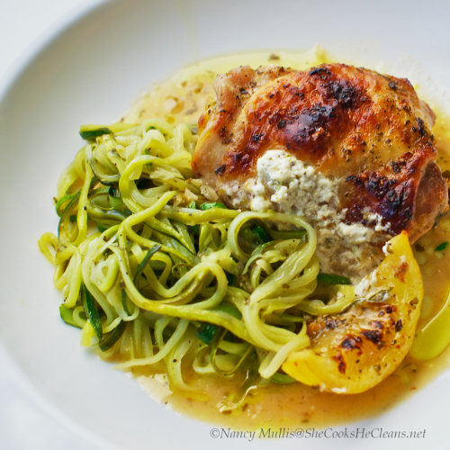 Lemon Garlic Chicken with Goat Cheese and Zucchini Noodles