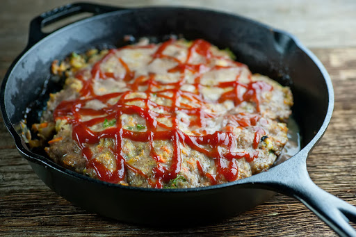 5. Place the skillet with the meatloaf on the center rack of the oven. Bake for 60 minutes.
