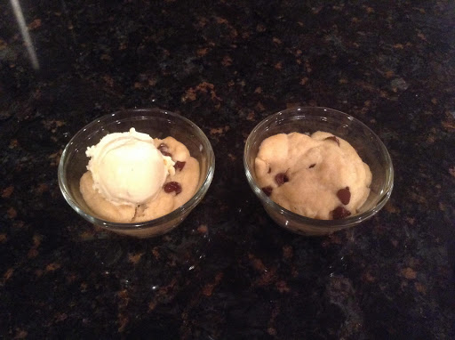 4 servings of chocolate chip cookies... made in the microwave.. and fast and delicious!