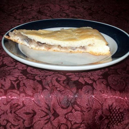 Roll out the sandwiched dough and cabbage as thin as you like (1/2 to 3/4 inch.) Brush with butter and prick the top with a fork. Transfer the dough onto a baking sheet and bake for 30-40 minutes or until golden brown on top. Cut into pieces and serve with more butter.