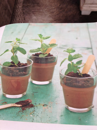4. Just before serving, pulse cookies in a food processor until finely ground. Top each pudding with 1 Tablespoon ground-cookie "dirt," and garnish with a planted mint sprig. Serve chilled.
