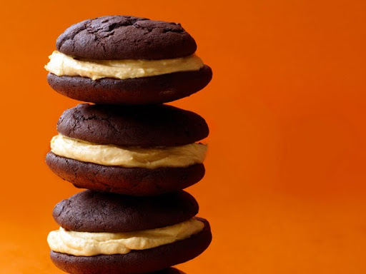 To assemble the whoopie pies, spread a heaping tablespoonful of filling on the flat side of a cookie and sandwich with another cookie. Repeat with the remaining cookies.