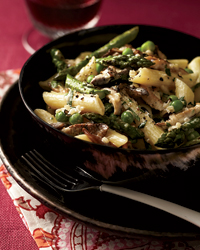 Penne with Asparagus, Peas, Mushrooms and Cream