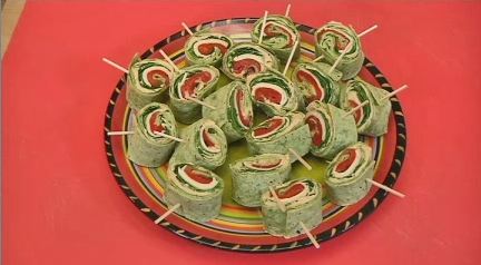4. These can be cut in half and served as a sandwich, or you can roll it very tightly and then cut into thick slices to be served on a pretty platter. Cut diagonally for a pretty presentation.