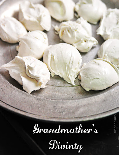 Using two teaspoons and working quickly, drop scoops of divinity onto sheets of waxed paper that has been placed on top of cooling racks. If the divinity begins to harden, add a few drops of warm water to help loosen it while working.
