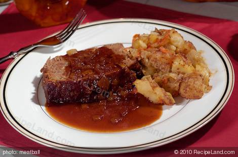 After loaf has cooked for 30 minutes, pour half of the sauce over the meat, return to oven and bake 45 minutes more, basting often with remaining sauce.