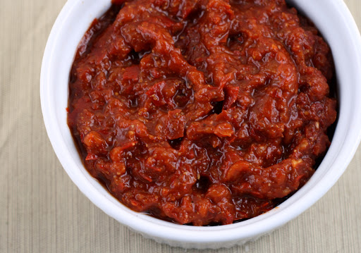 In a food processor combine chili peppers, garlic, salt, and olive oil. Blend.
