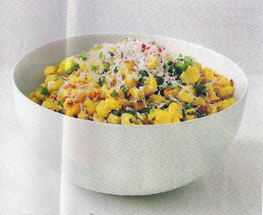 4. Transfer corn to a large wide bowl or deep platter; sprinkle jalapeno and crushed red pepper flakes over. Squeeze lime wedges over; sprinkle with cheese, chives and lime zest.