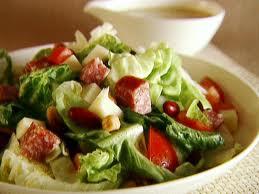 Put the lettuce, cheese, salami and artichokes in a mixing bowl and toss well. Drizzle just enough liquid from the artichoke jar to lightly moisten the salad; add the basil, season with salt and pepper, to taste, and toss to combine.