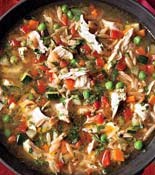 3.Add the EVOO, 2 turns of the pan, to the dutch oven. Add the zucchini, carrot, bell pepper, shallots and garlic; season with salt and pepper. Cook, stirring occasionally, until the vegetables are softened, 7 to 8 minutes. Return the orzo to the pot.