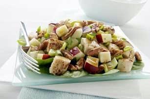 Drizzle with dressing just before serving. Sprinkle with pecans.