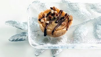 3. Meanwhile, in medium bowl, beat cream cheese, brown sugar, caramel topping and egg with electric mixer on medium speed until creamy. Spoon evenly over chocolate chips, about 1 1/2 teaspoons for each tartlet.