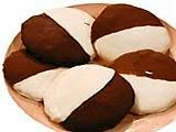 When cool, turn cookies over, so the flat side faces up. Spread white icing on half of each flat surface, then spread the other half with chocolate icing. Let set at room temperature for 30 minute
