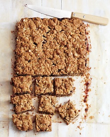 Press half the dough into pan. Spread the filling evenly over the dough, then crumble remaining dough on top of filling. Bake until golden and cooked through, about 40 minutes. Let cool completely in pan on a wire rack, about 1 hour, then lift out using parchment. Cut into 2-inch squares.