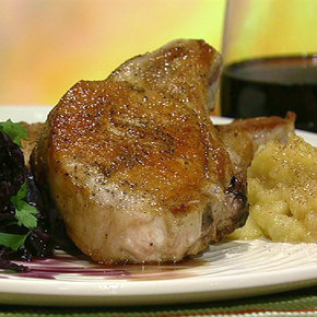 instructions Serve the pork chops with the apple sauce and a side of the braised cabbage.