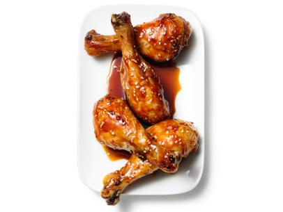Meanwhile, make the sauce: Bring the apple juice, vinegar, soy sauce, honey, lemon zest, red pepper flakes and a pinch of salt to a high simmer in a large skillet over medium-high heat. Cook until the sauce is syrupy and coats the back of a spoon, 20 to 25 minutes. Set aside until the chicken is done.