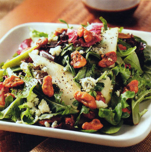 Baby Greens with Glazed Walnuts, Pears and Gorgonzola