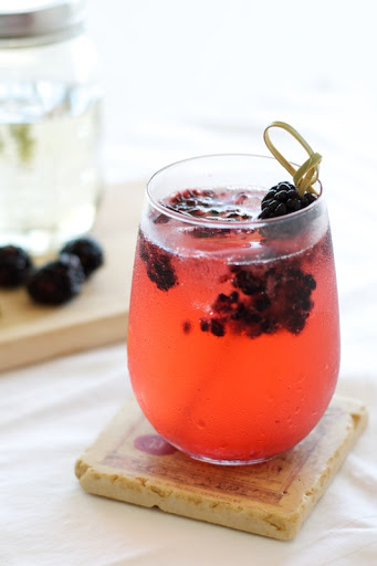 In a cocktail glass add the blackberries, lime juice and simple syrup, lightly crush berries to release their juice. Add ice, vodka and top with seltzer. Garnish with blackberries.