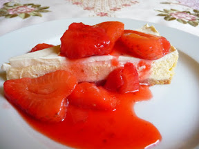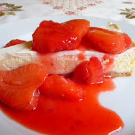 Low Carb White Chocolate Cheesecake with Strawberry Sauce