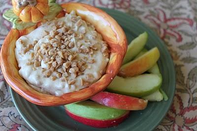 As the dip chills, the toffee bits will start to break down and form a gooey caramel-like swirl that is luscious!