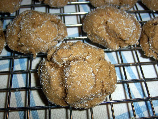 Beat the butter until creamy. Gradually add brown sugar and molasses. Beat until fluffy. Add egg white, fresh ginger and ground spices. Slowly add the flour and baking soda to the butter mixture. Drop dough by rounded teaspoons into granulated sugar. Roll to coat. Place on ungreased baking sheets. Bake at 375 F. Seven minutes for chewy cookies. Eight for crunchy cookies. Cool on racks.