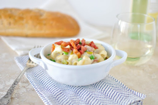 Creamy Pancetta, Leek + Pea Macaroni and Cheese