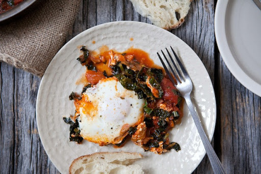 Eggs in a Wintry Kale and Tomato Sauce