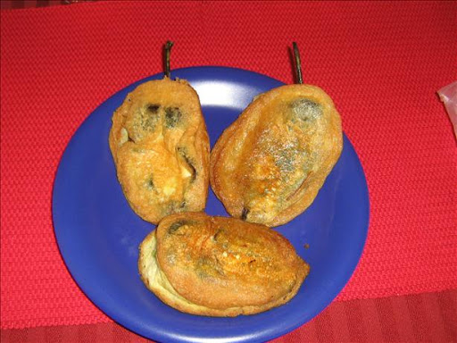 I've had this recipe posted for a long time and it's gotten great reviews as is so I don't want to change anything to how it's posted, but I don't make it the same way anymore. After frying the stuffed and battered peppers I put them in a pan, then pour enchilada sauce over them. Next I sprinkle them with cheese and then bake them til the cheese is melted. SOOOO yummy. Also a tip for anyone who is worried about their peppers holding together: Use toothpicks to hold the peppers closed before dipping them in the egg batter. I set the peppers in the batter and spoon it over the top so that I can handle them carefully. Take the toothpicks out before baking or serving.
