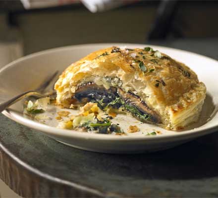 5. Very carefully roll the pastry over the top of the mushroom mixture until you have a log. Tuck the edges under the pastry, ensuring the seam is facing the bottom.