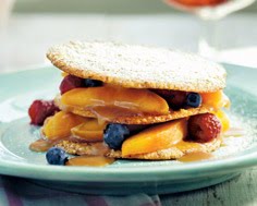Make wafers and sauce way ahead and then provide fresh fruit whenever a spectacular sweet is needed. The incredibly thin and crispy pecan wafers form a Napoleon stack with fruit and caramel sauce. A single batch of wafers makes about 20, enough for six Napoleons— and it is easy to double the recipe as they are a fine nibble on their own!