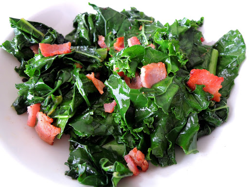 Add the kale, and saute until the bacon is thoroughly cooked and the kale is tender (about 8-10 minutes).