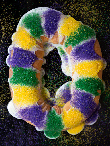 King cakes, which commemorate the Epiphany—the wise men's discovery of the baby Jesus—are eaten the world over in various forms, but they're nowhere more beloved than in New Orleans, where the cake is associated with the festivities of Mardi Gras. This version, made with a rich brioche dough and stuffed with a decadent cream cheese filling, is drizzled with a buttermilk glaze and sprinkled with crunchy green, gold, and purple sanding sugars.