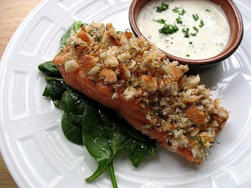 Salmon, Dill-Crusted with Herbed Lemon Yogurt Sauce