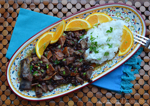 To serve, ladle some of the bean broth into shot glasses or little cups, add a dash of hot pepper sauce and drink – this is traditionally done to get the palate prepared for the feijoada. Serve feijoada in large wide bowls, garnished with orange segments and accompanied by collard greens and white rice.