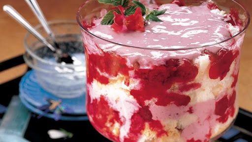 Layer half each of the cake pieces, gelatin mixture and yogurt in 3-quart glass bowl; repeat. Garnish with reserved raspberries. Refrigerate at least 2 hours until firm. Cover and refrigerate any remaining dessert.