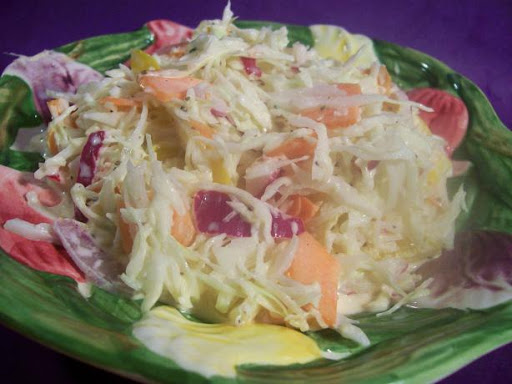 Creamy Coleslaw With Bell Peppers & Red Onion