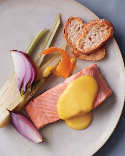 Poached Salmon with Grapefruit Olive Oil Hollandaise Sauce