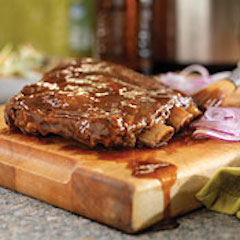 Remove ribs to platter and cover. Strain the cooking liquid and pour off fat. Add 1/3 cup remaining liquid to sauce; stir until smooth.