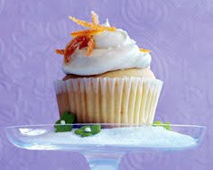 Orange adds a fresh note to these cupcakes reminiscent of the frozen flavours of a creamsicle. I like to garnish the tops with sugared orange peel (recipe follows) or purchased chocolate-covered orange peel; however, orange jelly beans add a whimsical touch.