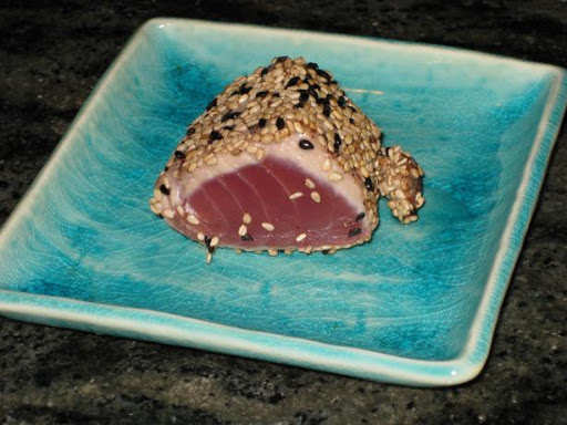 If you like steak, you will love this sesame-crusted Ahi tuna steak recipe. This cut of tuna is best enjoyed rare. This is a beautiful and simple way to serve one of the tastiest fish around.. enjoy! Add some prepared whole grain rice and a nice asian salad or slaw for a full meal.