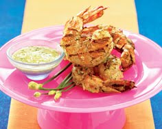3. Remove shrimps from marinade and discard marinade. Preheat grill on high and grill shrimps about 1½ minutes per side or until pink and slightly curled. Cool. Stir in coconut and remaining mint and coriander to dipping sauce. Serve with shrimps. Place shrimps on bamboo skewers, if desired.