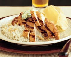 4. Meanwhile, preheat barbecue or broiler. Grill chicken using medium to medium-high heat 10 to 15 minutes, turning as needed, or until cooked. Serve diagonally sliced chicken over hot rice with a dollop of raita.