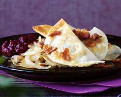 5. Return skillet to medium heat and pan-fry perogies for 5 minutes or until light golden. Chop or crumble bacon overtop and serve with cranberry sauce.