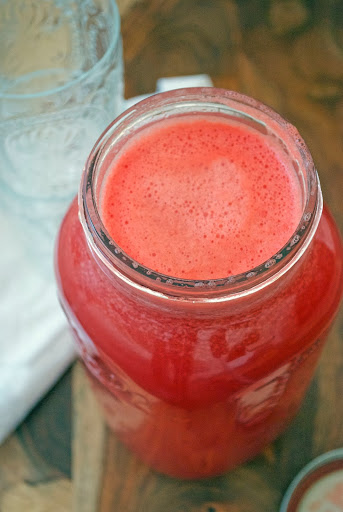 Over a large bowl, pour the blended ingredients through a strainer to catch the remaining juice.