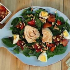 Preheat the oven to 350°F. Spray a 1 1⁄2 quart casserole dish with cooking oil and layer the bottom evenly with the drained spinach.