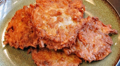 Drop packed teaspoons of the potato mixture into the skillet and flatten them with the back of a spoon.